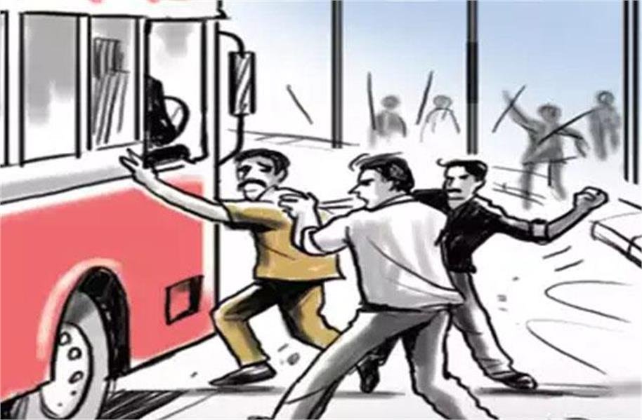 इनोवा सवार युवकों ने बस पर किया हमला, ड्राइवर व कंडक्टर को धमकियां दे आरोपी फरार