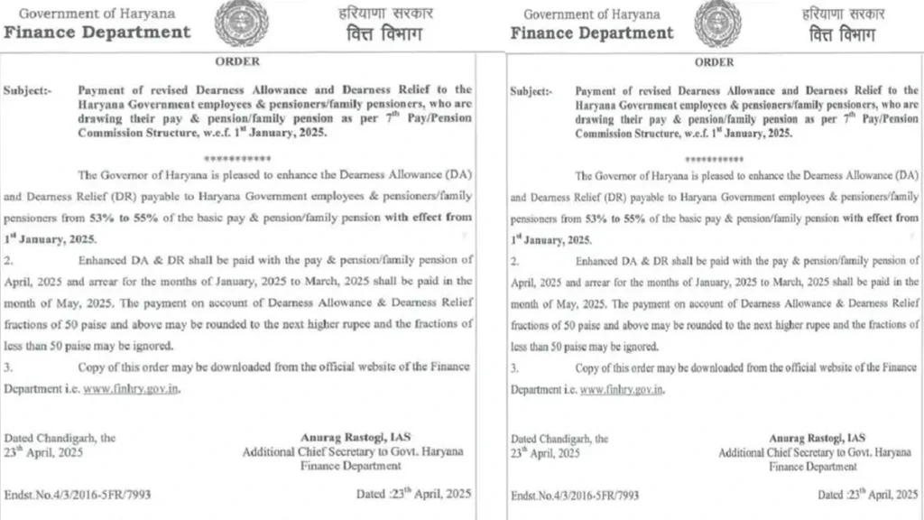 इस आदेश की कॉपी वित्त विभाग की आधिकारिक वेबसाइट www.finhry.gov.in से डाउनलोड की जा सकती है।