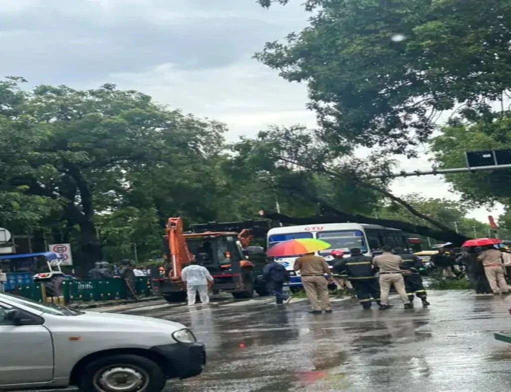 यहां एक CTU बस पर पेड़ गिर गया। बस में यात्री सवार थे, लेकिन सभी सुरक्षित रहे। - खुड्डा लाहौरा – नया गांव रोड: