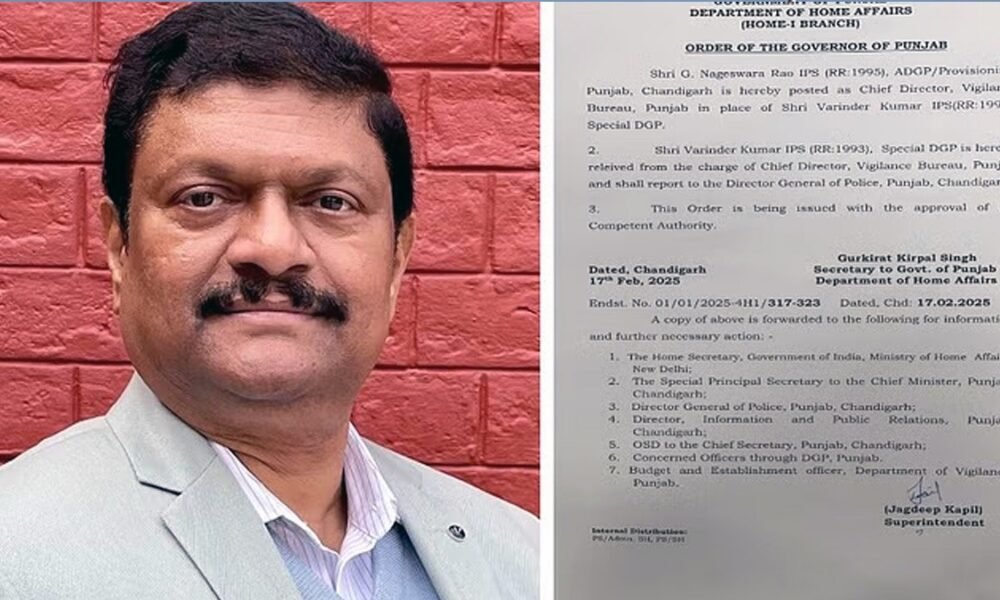 पंजाब विजिलेंस ब्यूरो के नए प्रमुख बने IPS नागेश्वर राव , पूर्व IPS वरिंदर कुमार को पद से हटाया।