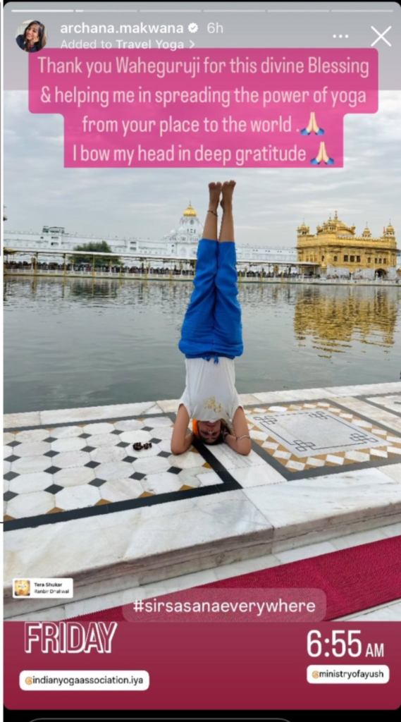 Social Media इन्फ्लुएंसर अर्चना मकवाना ने श्री हरमंदिर साहिब की परिक्रमा में योग किया। उन्होंने अपने सोशल मीडिया अकाउंट पर तस्वीर शेयर की है. अर्चना मकवाना शीर्षासन करती नजर आ रही हैं| अर्चना ने कहा कि- मैं योग की ताकत को दुनिया के सामने लाना चाहती हूं. उनकी ये तस्वीर सोशल मीडिया पर वायरल हो रही है| कई लोग इसका विरोध कर रहे हैं| जिसके बाद अर्चना मकवाना ने माफी भी मांगी है |