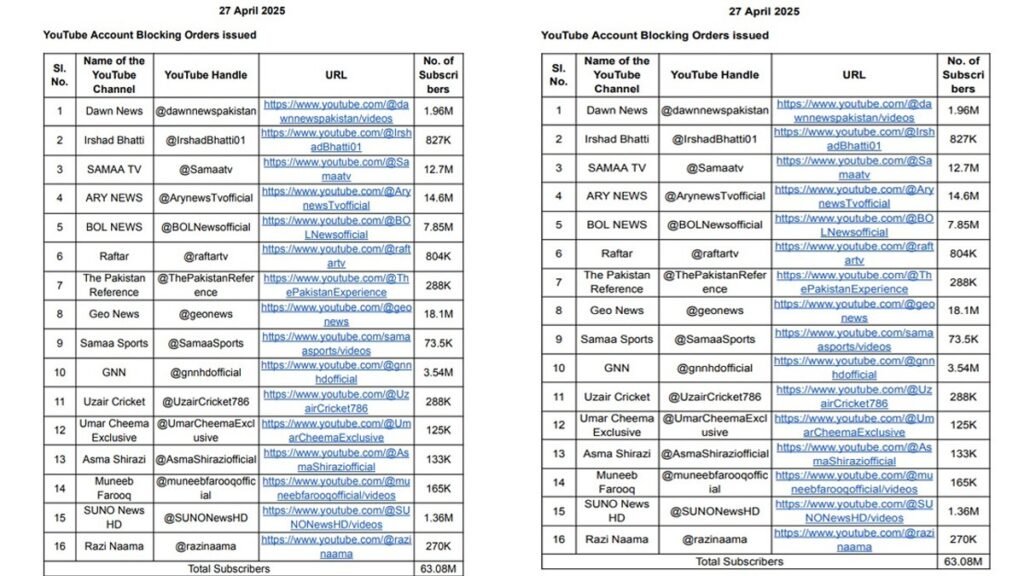 भारत सरकार ने सोमवार को महत्वपूर्ण कार्रवाई करते हुए 17 पाकिस्तानी यूट्यूब चैनलों पर प्रतिबंध लगा दिया है। यह कदम पहलगाम आतंकी हमले से संबंधित गलत रिपोर्टिंग के कारण उठाया गया। जिन चैनलों पर कार्रवाई की गई है, उनमें शोएब अख्तर का यूट्यूब चैनल, डॉन न्यूज, समा टीवी और जियो न्यूज जैसे प्रमुख नाम शामिल हैं।