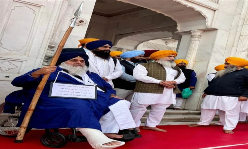 श्री अकाल तख्त साहिब से पंझ सिंह साहिबान द्वारा सरकार के दौरान हुई गलतियों के लिए मिली सजा को स्वीकार करते हुए Sukhbir Badal श्री दरबार...